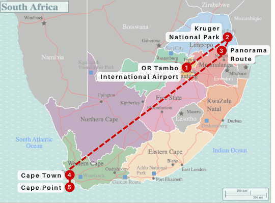 This transformative bush to beach journey reveals South Africa’s vibrant soul and raw beauty. The adventure begins in the legendary Kruger National Park, where sunrise game drives, golden savannahs and unforgettable encounters with the Big Five awaken a deep connection to the wild. Further south in Cape Town, the mountains, ocean and culture collide in spectacular fashion. From Cape Point’s windswept cliffs to the penguin‑filled shores of Boulders Beach, this is nothing short of a feast for the soul. Explore the lively V&A Waterfront, historical landmarks, sun‑soaked sands of Camps Bay and breathtaking coastal scenery, which offers space to relax, reflect, and recharge.