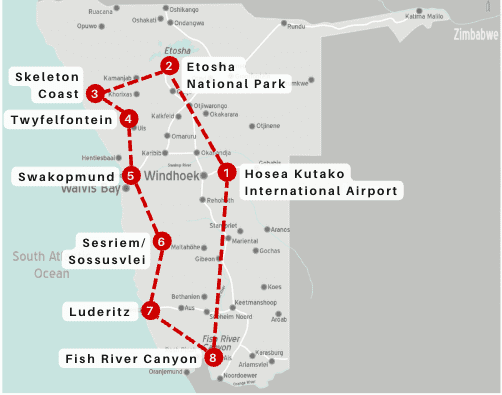 This is Namibia at its most cinematic-soaring red dunes, ghostly shipwreck coasts and wildlife-rich plains stitched together by epic road journeys. Track lions, elephants and rhinos across the vast plains of Etosha National Park, then journey to Damaraland’s ancient landscapes to explore the rock engravings of Twyfelfontein, a UNESCO World Heritage site, where you will find desert-adapted elephants. Follow the coastline, along the hauntingly beautiful Skeleton Coast and charming Swakopmund, where dunes meet the Atlantic. In the Namib Desert, climb the iconic Big Daddy Dune and stand among 900-year-old trees in Deadvlei, before uncovering the ghostly beauty of Kolmanskop. The journey concludes at the dramatic Fish River Canyon, where you will explore the canyon and unwind in the mineral waters of Ai-Ais Geothermal Hot Springs.