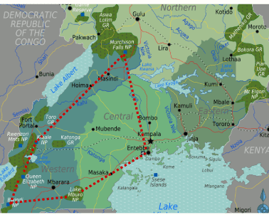 Embark on an unforgettable Ugandan adventure! Feel the power of Murchison Falls, track chimpanzees in Kyambura Gorge, cruise the wildlife – rich Kazinga Gorge, and come face-to-face with gorillas in the misty Bwindi rainforest. From roaring waterfalls to lush jungles and open savannas, this journey is packed with breathtaking landscapes and unforgettable wildlife encounters.