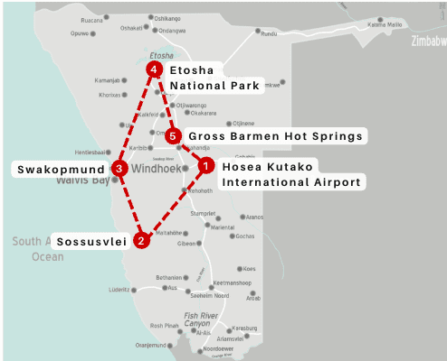 Restore balance on a transformative wellness safari through Namibia’s most striking landscapes. Begin in the tranquil Windhoek Highlands before venturing into the Namib Desert. Immerse yourself in the towering red dunes, climb the iconic Dune 45, wander among the ancient sun‑bleached trees of Deadvlei, feel the rush of quad biking across golden sands and relax on Swakopmund’s Atlantic beaches. Enjoy mindful game drives and unforgettable wildlife encounters at the legendary waterholes of Etosha National Park, and embrace local cultures through storytelling and traditions. Conclude your journey in the healing, mineral‑rich waters of Gross Barmen Hot Springs, a perfect oasis for renewal and reflection.